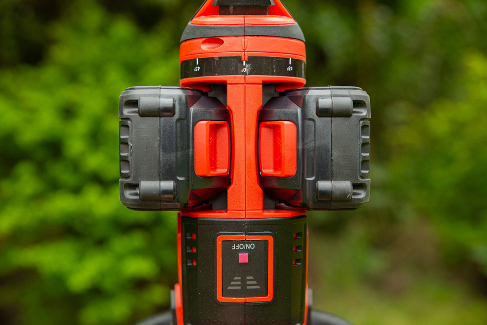 Аккумуляторный кусторез, работающий от двух 18-вольтовых аккумуляторов и приводимый в действие бесщеточным двигателем. Они обеспечивают пользователю мощность, которая часто превышает мощность двигателей внутреннего сгорания, бесшумную работу и свободу от громоздкого удлинителя электроножниц. Высокая скорость режущих ножей значительно облегчает работу со свежими побегами и ветками толщиной до 28 мм. 22-дюймовое лазерное лезвие с Т-образным защитным кожухом. Вращающаяся ручка позволяет пользователю выбирать удобную плоскость резки. Мягкая прорезиненная ручка обеспечивает надежное удержание инструмента во время работы. Хранение облегчается благодаря вешалке, расположенной на конце ножниц. Ножницы работают около 1 часа от двух аккумуляторов емкостью 4 Ач.