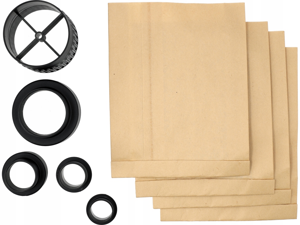 - Комплектація: відсмоктування стружки, гнучкий шланг діаметром 100 мм, 2 кінці шланга, фільтр, фільтрувальний мішок, адаптер для підключення електроінструментів